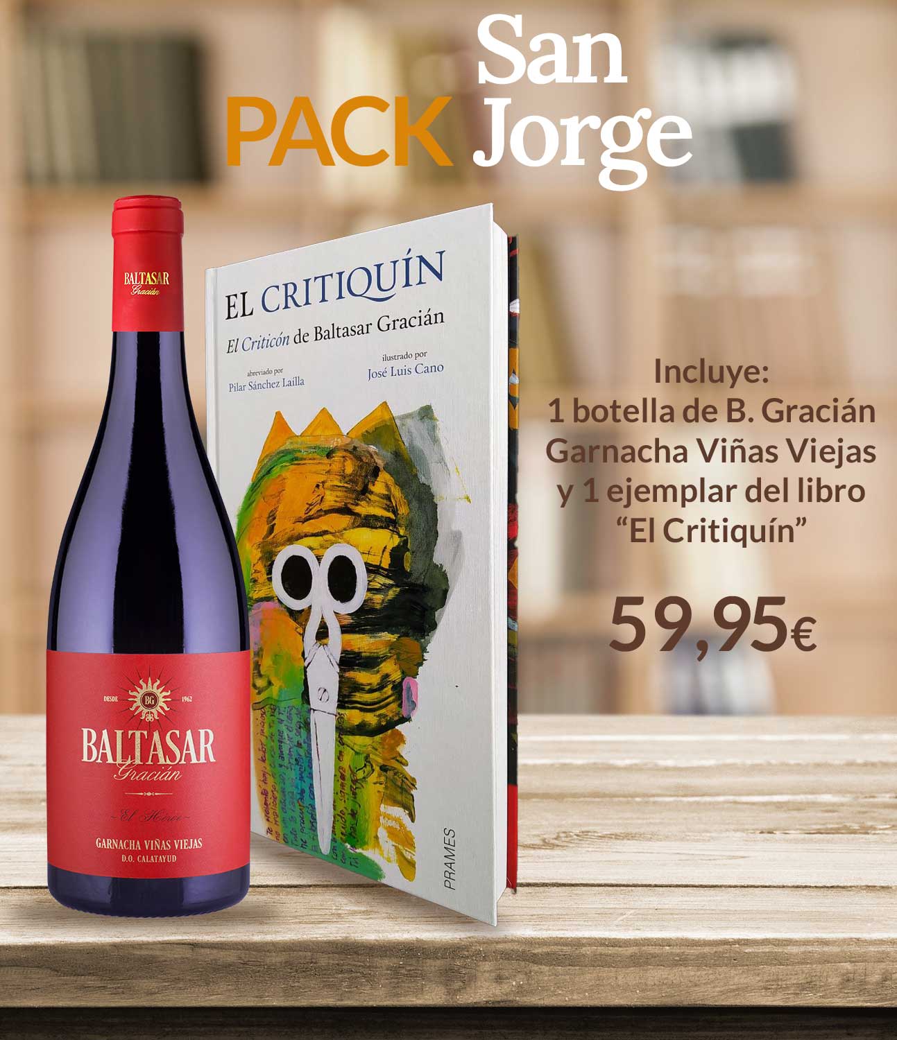 Pack San Jorge reúne una botella de Garnacha Viñas Viejas de Baltasar Gracián —intensa, honesta, con carácter— y El Critiquín, una versión accesible e ilustrada de El Criticón, esa gran obra que todos conocemos…